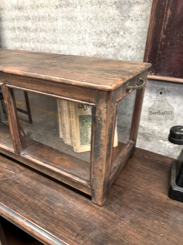 Antieke houten vitrinekast met glazen wanden en kleppen 147726 verkocht