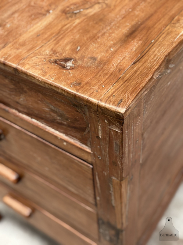De combinatie van functionaliteit en karakter maakt dit meubel tot een zeldzaam stuk. Door de open ruimte onder het blad oogt het luchtig en elegant, terwijl het tegelijk robuust aanvoelt. Perfect als keukeneiland door zijn perfecte hoogte van 92 cm, werktafel of als losstaand meubel in een stoer, warm interieur.