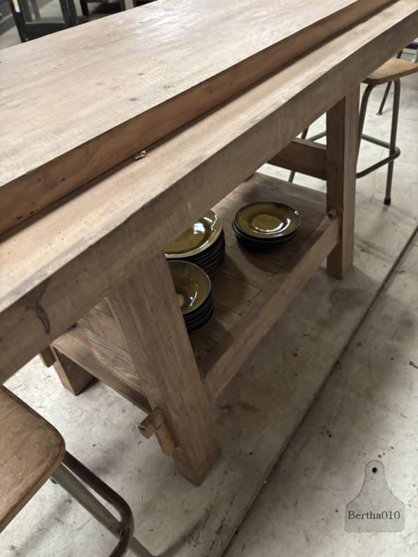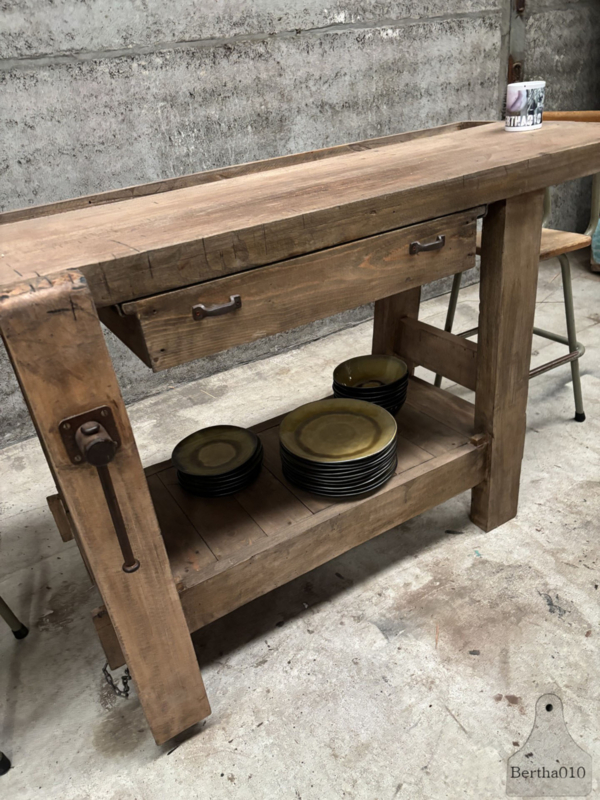 Deze charmante Franse werkbank is meer dan een gebruiksvoorwerp – het is een tastbaar stukje geschiedenis. Met de hand vervaardigd van massief hout, diepgeworteld in het Franse ambacht, en door de jaren heen prachtig doorleefd. De werkbank ademt karakter: iedere noest, kras en verkleuring vertelt een eigen verhaal