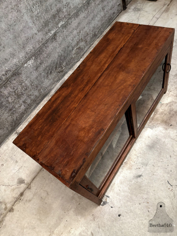 Afkomstig uit de jaren ’20–’30 van de vorige eeuw, en gezien de sobere, doelmatige vormgeving waarschijnlijk oorspronkelijk gebruikt als winkelvitrine.