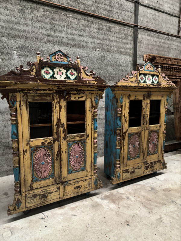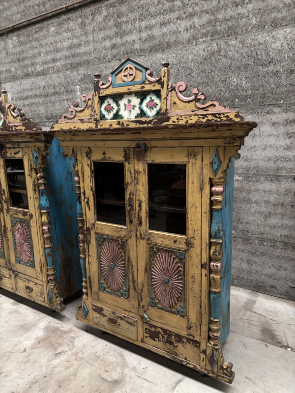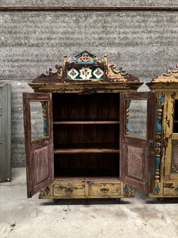 OverzichtTwee karaktervolle, antieke en destijds handgemaakte kasten uit India met een prachtig doorleefde uitstraling. Gezien hoe leeftijd in zeer goede staat.