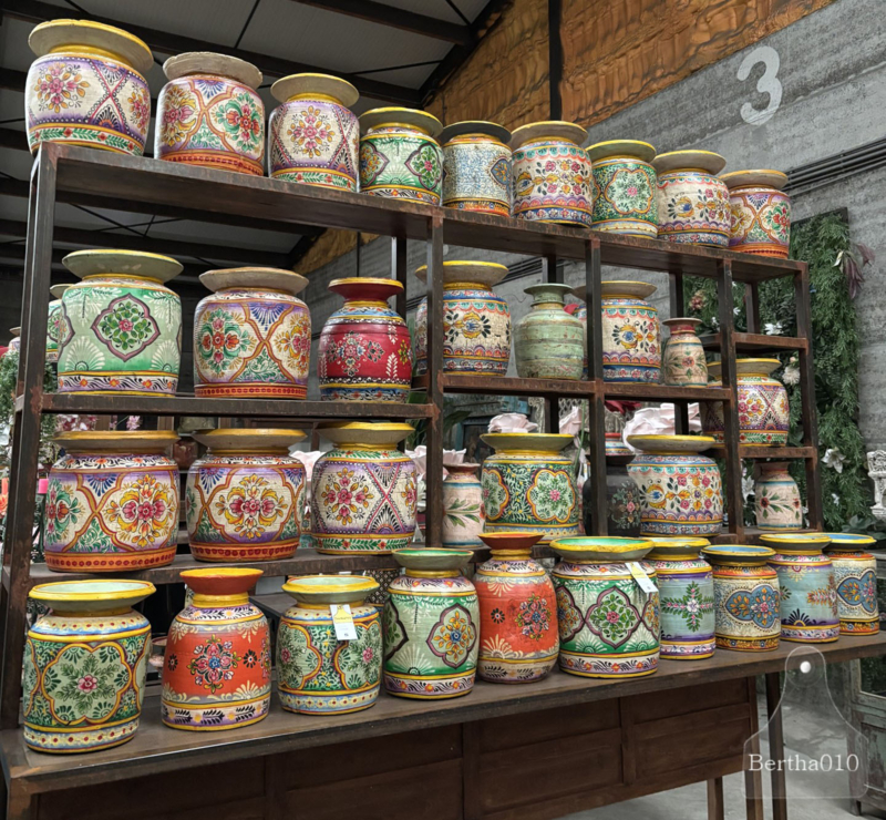 Deze grote, handbeschilderde houten melkpot is doordrenkt met de ziel van levendige culturen en creëert een serene, warme sfeer die je ruimte transformeert tot een heilig toevluchtsoord.