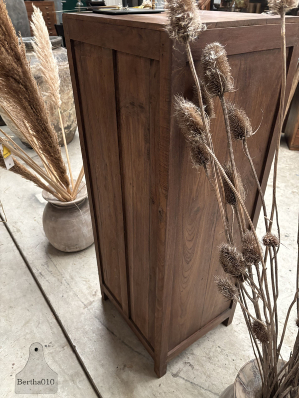 Een charmant, compact meubelstuk dat zowel functioneel als decoratief is en direct sfeer toevoegt aan je woonruimte.