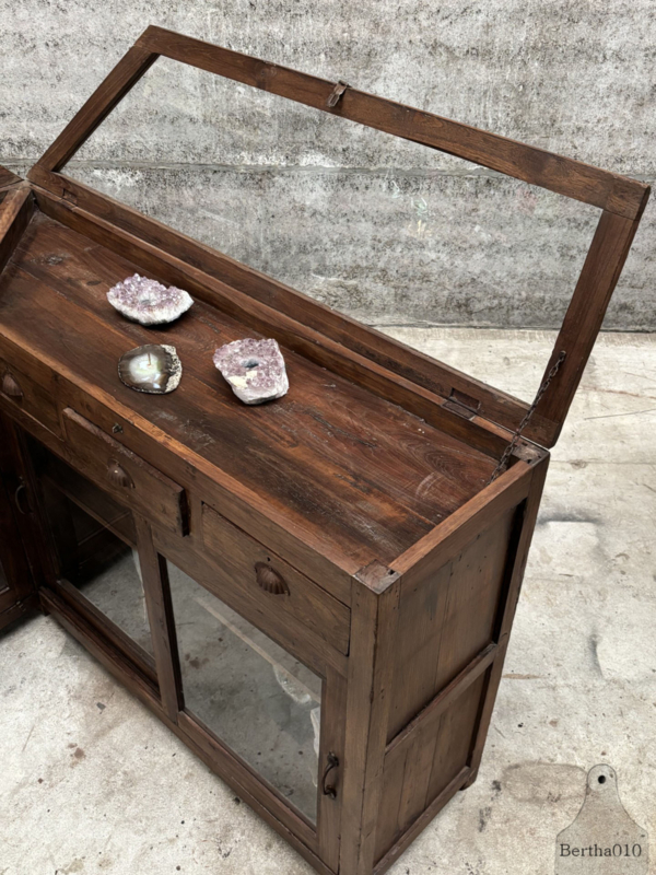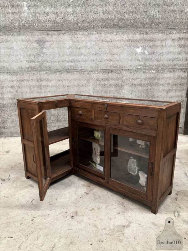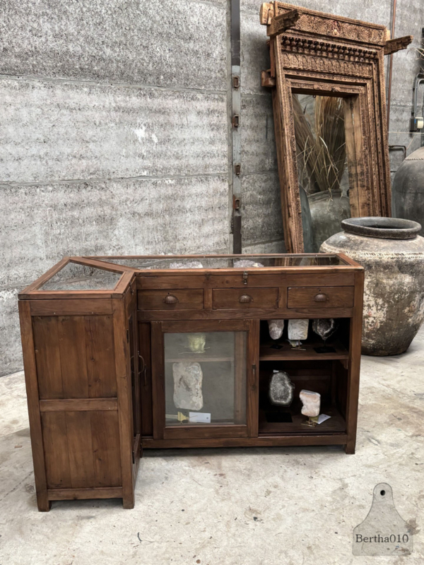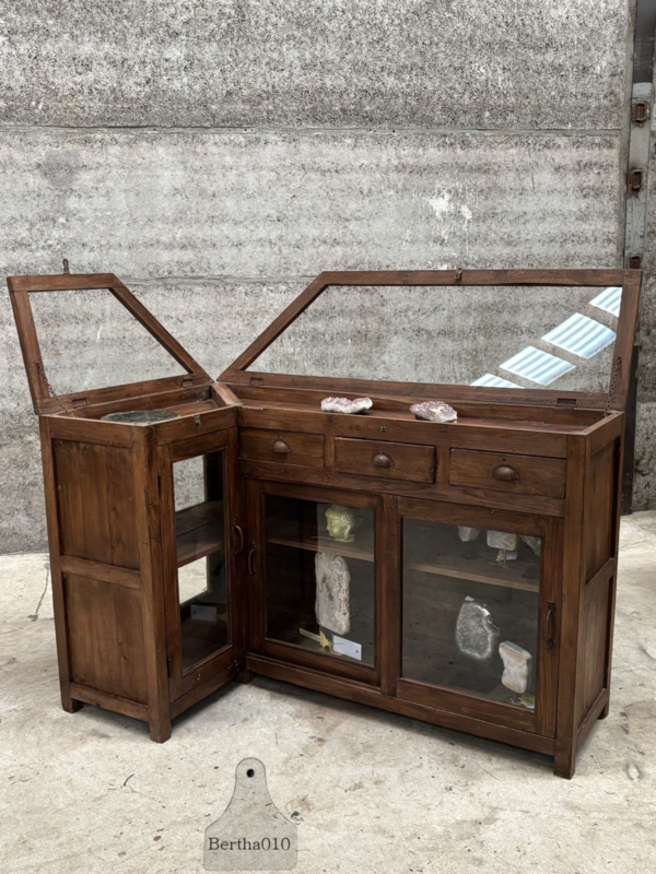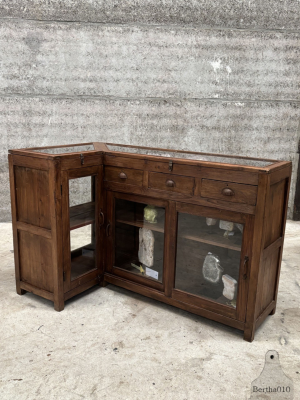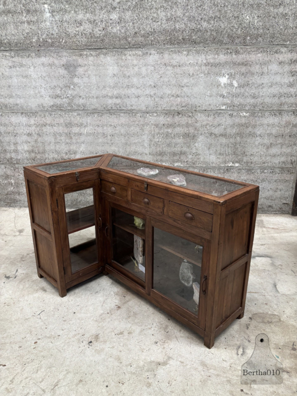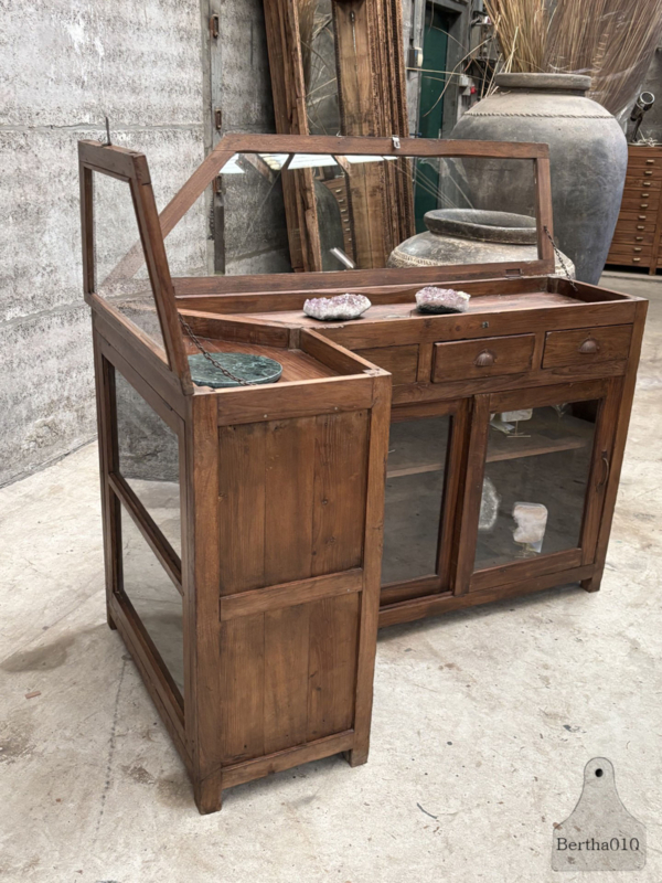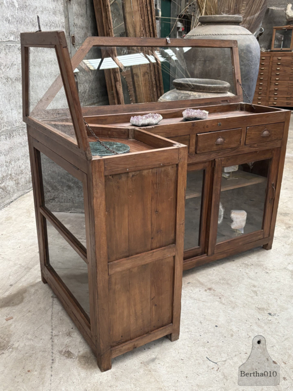 Authentieke houten vitrinekast winkeltoonbank erfstuk met ziel 147862