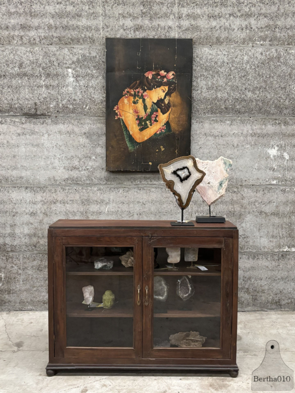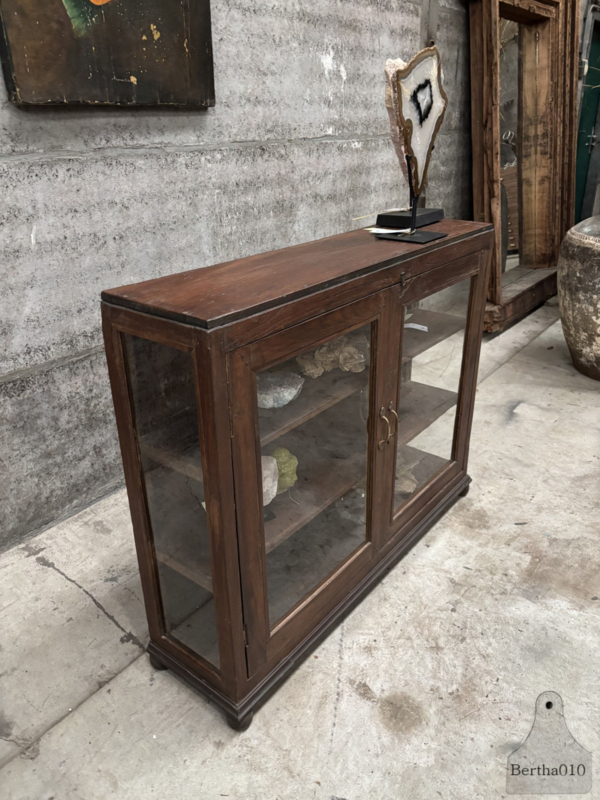 Dankzij de slanke proporties laat deze vitrine zich moeiteloos plaatsen in een intieme ruimte of juist als subtiele blikvanger in een groter interieur. Perfect voor een winkel, galerie of privécollectie waar objecten het verdienen om met aandacht gepresenteerd te worden.
