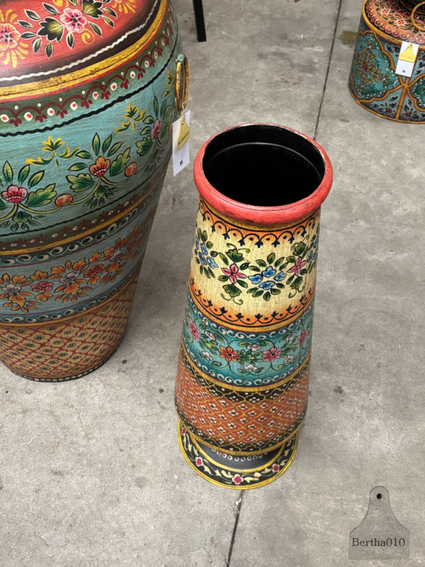 Unieke Indiase ijzeren vaas met handbeschilderd bloemmotief 147905