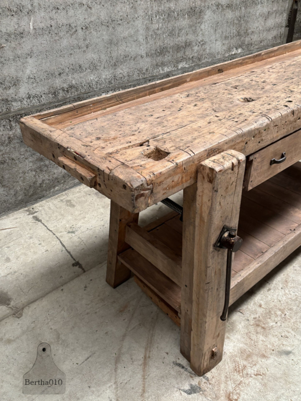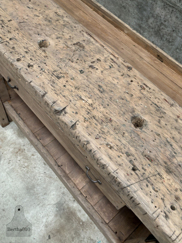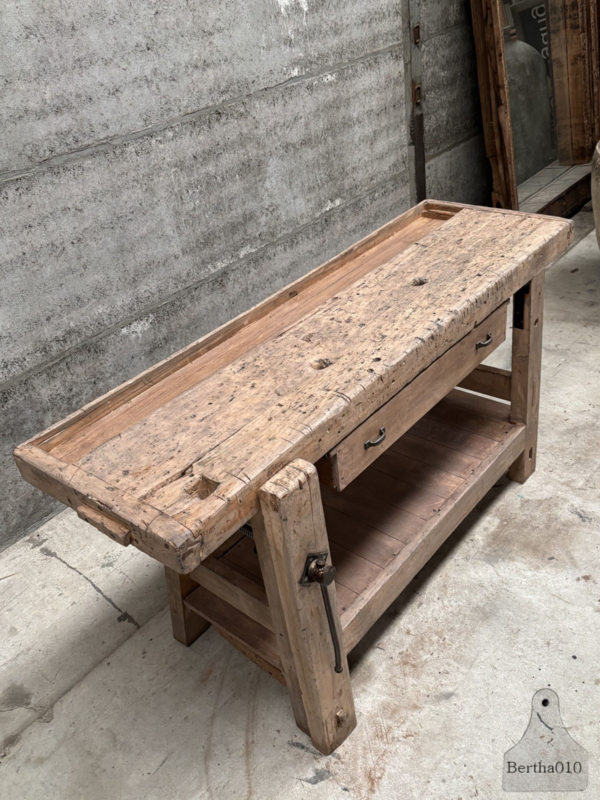 De werkbank is in onze werkplaats zorgvuldig gerenoveerd, met groot respect voor de originele bouw en uitstraling. Waar nodig hersteld, zonder het karakter aan te tasten.