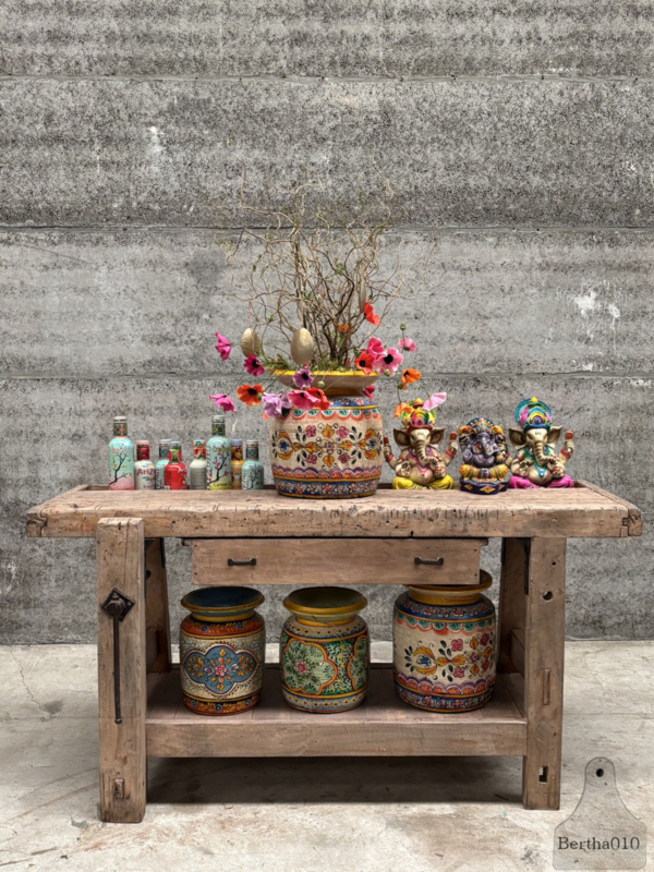 Een uniek en functioneel meubel met een verhaal – perfect als werkbank, maar ook als eyecatcher in je interieur.