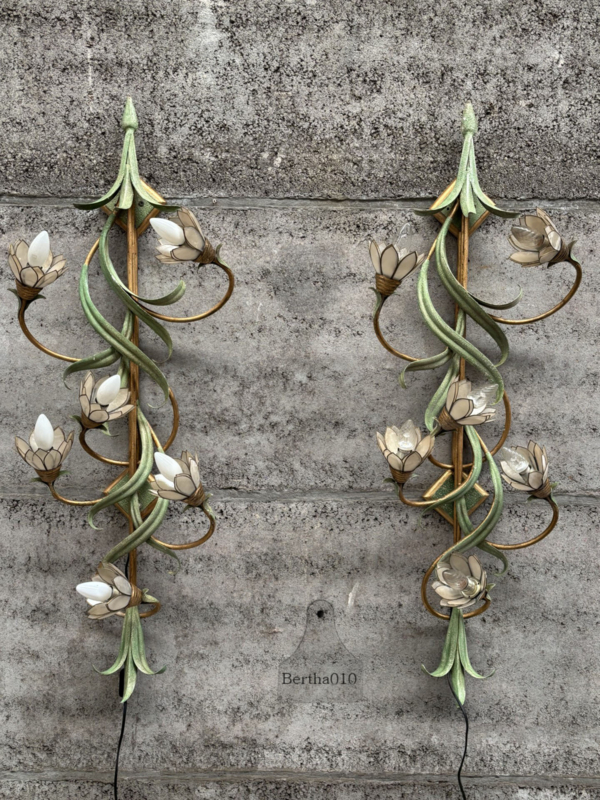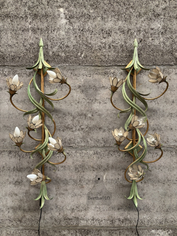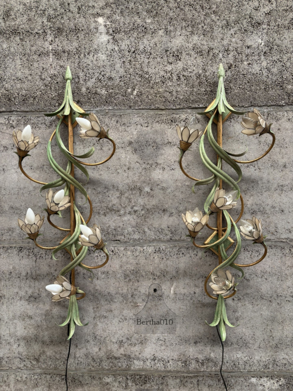 Originele Italiaanse wandlampen Banci Firenze parelmoer bloemen 147969