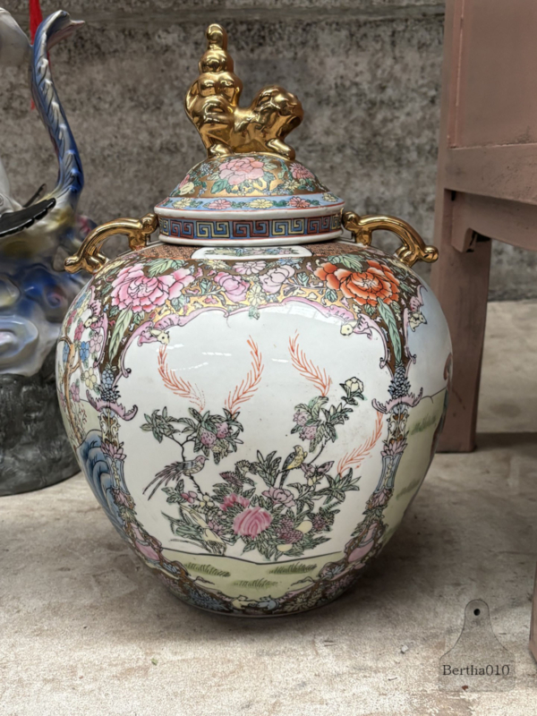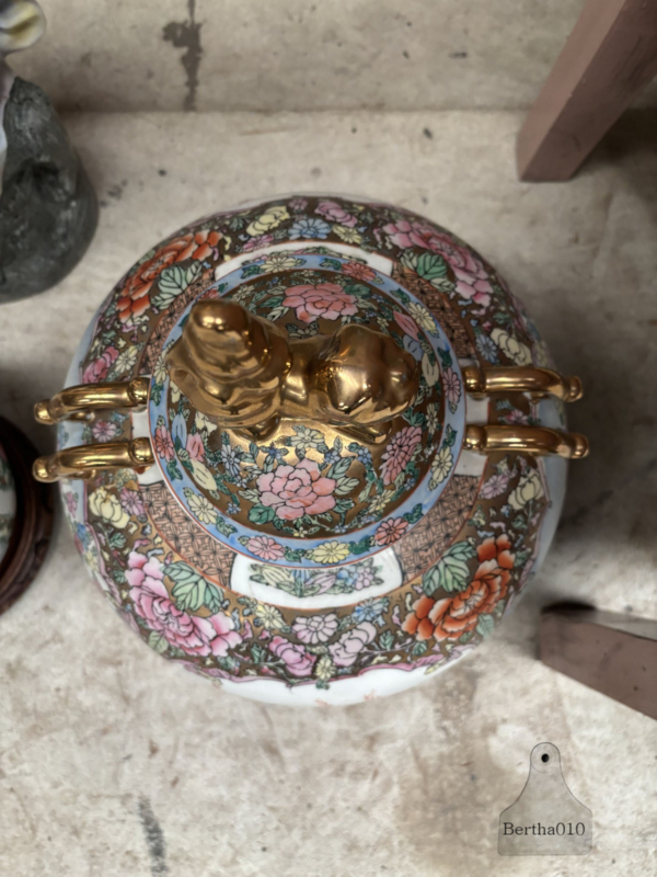 Monumentale Chinese ‘Palace Style’ dekselvaas met gouden Foo Dog (42 cm) 147973