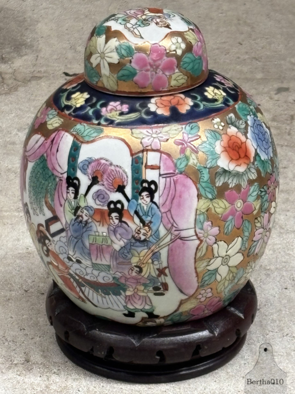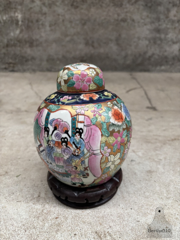 Handbeschilderde Famille Rose gemberpot (15 cm) 147975
