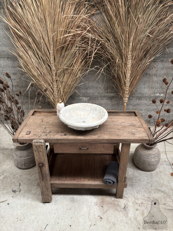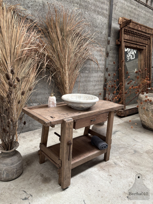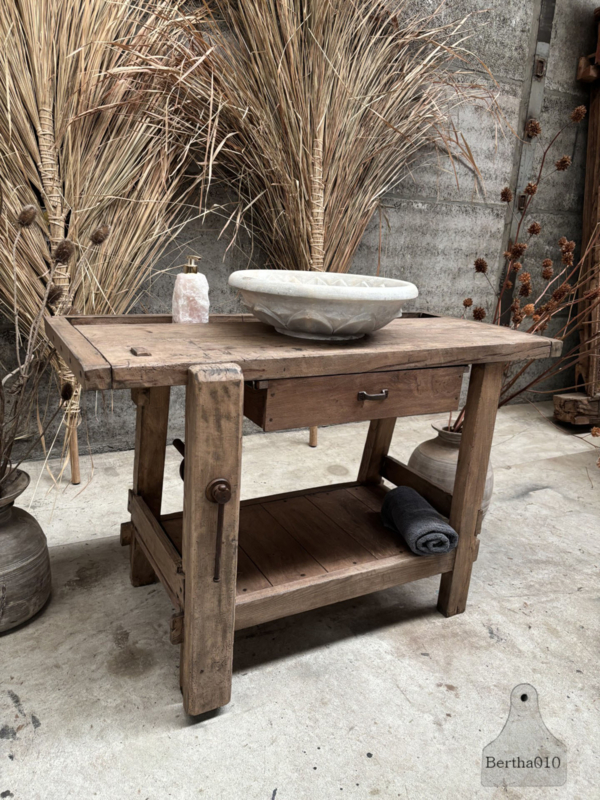 De werkbank staat als een huis, is daar waar nodig, met respect voor de makers van destijds gerenoveerd. Lade werkt zoals u dat van ons gewend bent soepel, de werkbank is behandeld en gecoat, zodat deze direct gebruiksklaar.