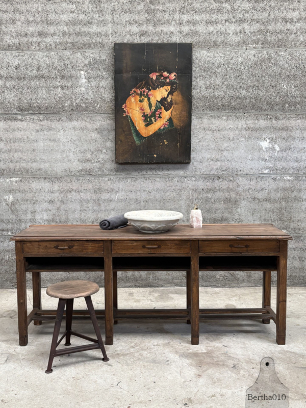 Authentiek lang schoolbureau 3 laden ideale hoogte 147932 verkochtbadkamermeubel lang houten badkamermeubel marmer waskom antieke bureau schoolbureau lange oud bureau ideaal houten badkamertafel houten badkamermeubel met laden lang meubel hout werkruimte werktafel hout met laden antieke bureau