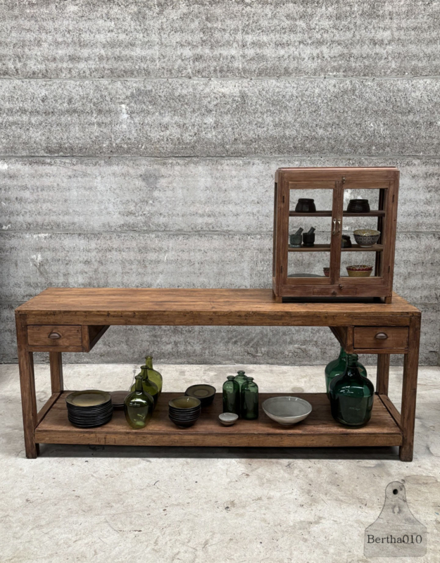 Oude werkbank toonbank keukeneiland 147658 lengte 201 cm verkochtVintage werkbank met lade oude werkbank houten keukeneiland oude houten werkbank met lades werkbank robuust hout antiek houten werkbanken met laden schrijnwerkersbank oude werkbank keukeneiland vintage werkbank antiek keukeneiland