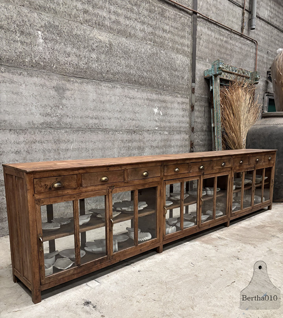 Oude jaren 20 toonbank, museumvitrine, keukeneiland 147781a verkochtOud houten keukeneiland losstaand antiek houten keukeneiland met glas houten dressoir antieke vitrine antieke glazen dressoir vintage meubels antieke meubels